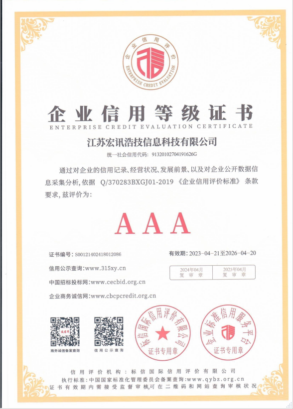 企业信用等级证书