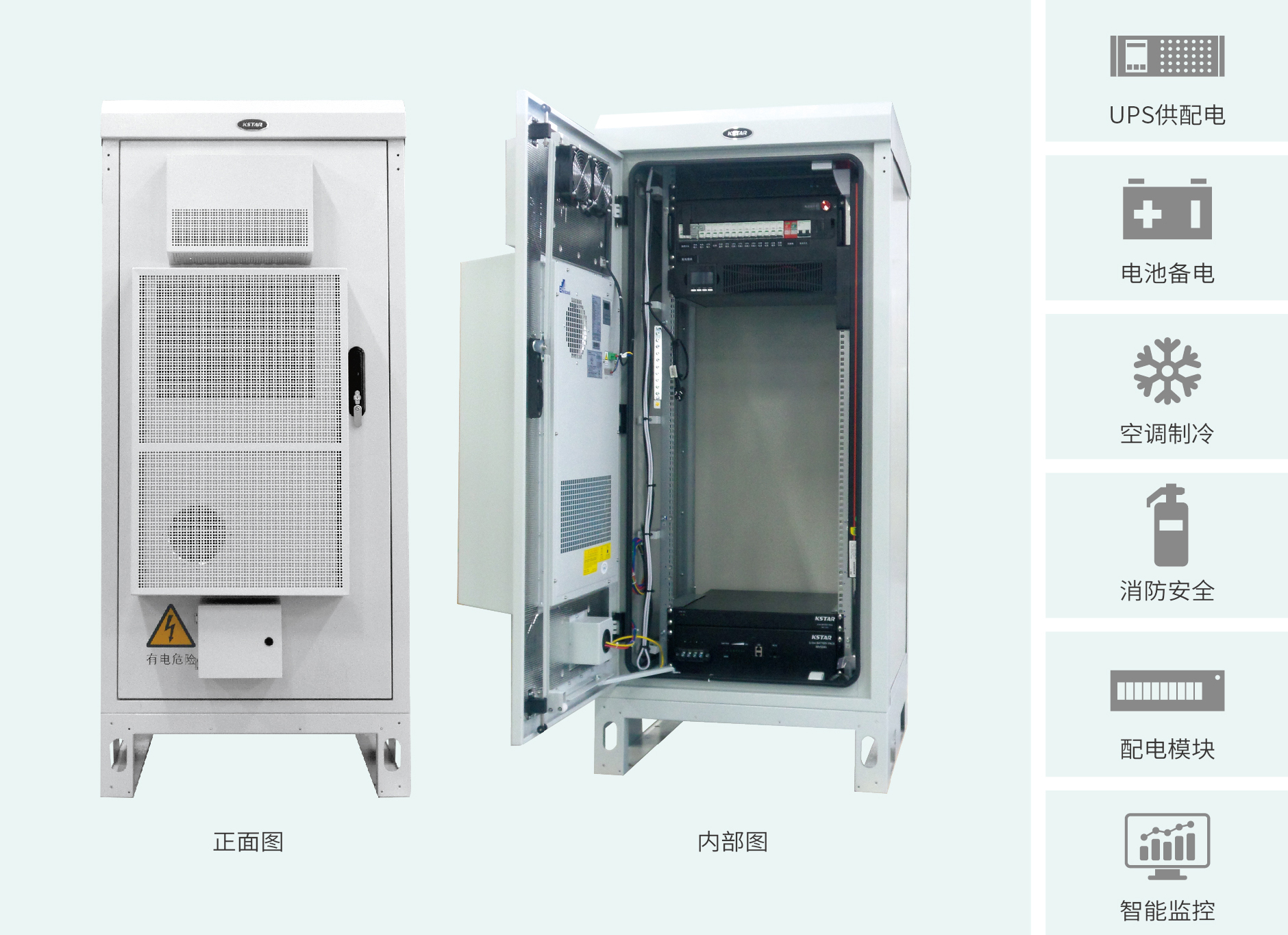 对于户外站点使用场景,科士达推出户外一体化电源解决方案。该解决方案充分考虑了户外各种使用场景,具有防尘、防水、耐高温、防潮、抗寒等特点,能对抗极其恶劣的环境;设备空间小,灵活安装;供电可靠性高,UPS备电时间长;免维护,远程统一智能监管。